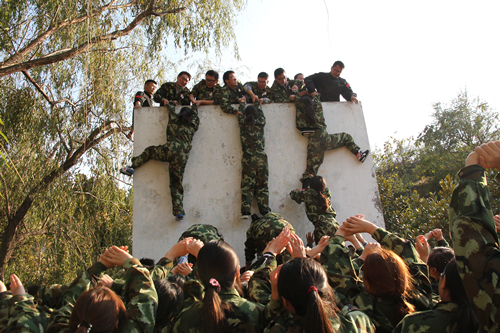 員工在教練的指導(dǎo)下,進(jìn)行高空抓杠、信任背摔、翻牌游戲、翻越畢業(yè)墻等項(xiàng)目活動(dòng)。其中高空抓杠——空中項(xiàng)目是一個(gè)自我挑戰(zhàn)的項(xiàng)目,目的是突破心理保護(hù)層,建立自信心,克服心理障礙,增強(qiáng)自發(fā)控制、自我決斷的能力。很多同仁克服 “恐高”、身體不適等因素,勇敢的挑戰(zhàn)自我、超越自我,其表現(xiàn)令人刮目相看。高空一小步,人生一大步,在生活、工作中,很多事情不是不能做,而是不敢做,不是能力問(wèn)題,而是心理問(wèn)題,不要自我設(shè)限。信任背摔¬——站在1點(diǎn)4米的臺(tái)子上,雙手被捆,雙腿繃直,直接倒下去,下面有團(tuán)隊(duì)人員做保護(hù),體現(xiàn)了自我的勇氣,責(zé)任,以及團(tuán)隊(duì)成員間的信任。最后翻越畢業(yè)墻,初看不可能完成的任務(wù),最后被大家完成了,集中體現(xiàn)團(tuán)隊(duì)協(xié)作的重要性,特別是對(duì)做“基座”成員的敬意,讓大家記住要永保一顆感恩之心。