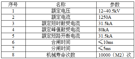 表 3分相快速開關(guān)技術(shù)參數(shù)表